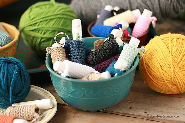 Practical, portable, and genuinely clever. This little keychain holder keeps your chapstick exactly where you need it, and it works up in almost no time. A great project for scraps of cotton or fingering weight yarn.
