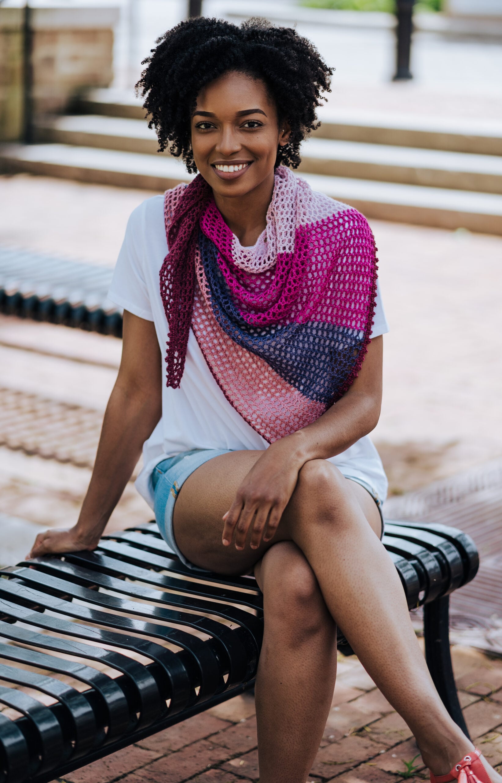 If you love stash-busting projects, the Carillon Shawl is a dream. Choose five fingering weight mini skeins in a palette you love and watch a gorgeous mesh triangle shawl emerge. It’s the kind of project where the yarn does most of the talking. You just provide the hook.