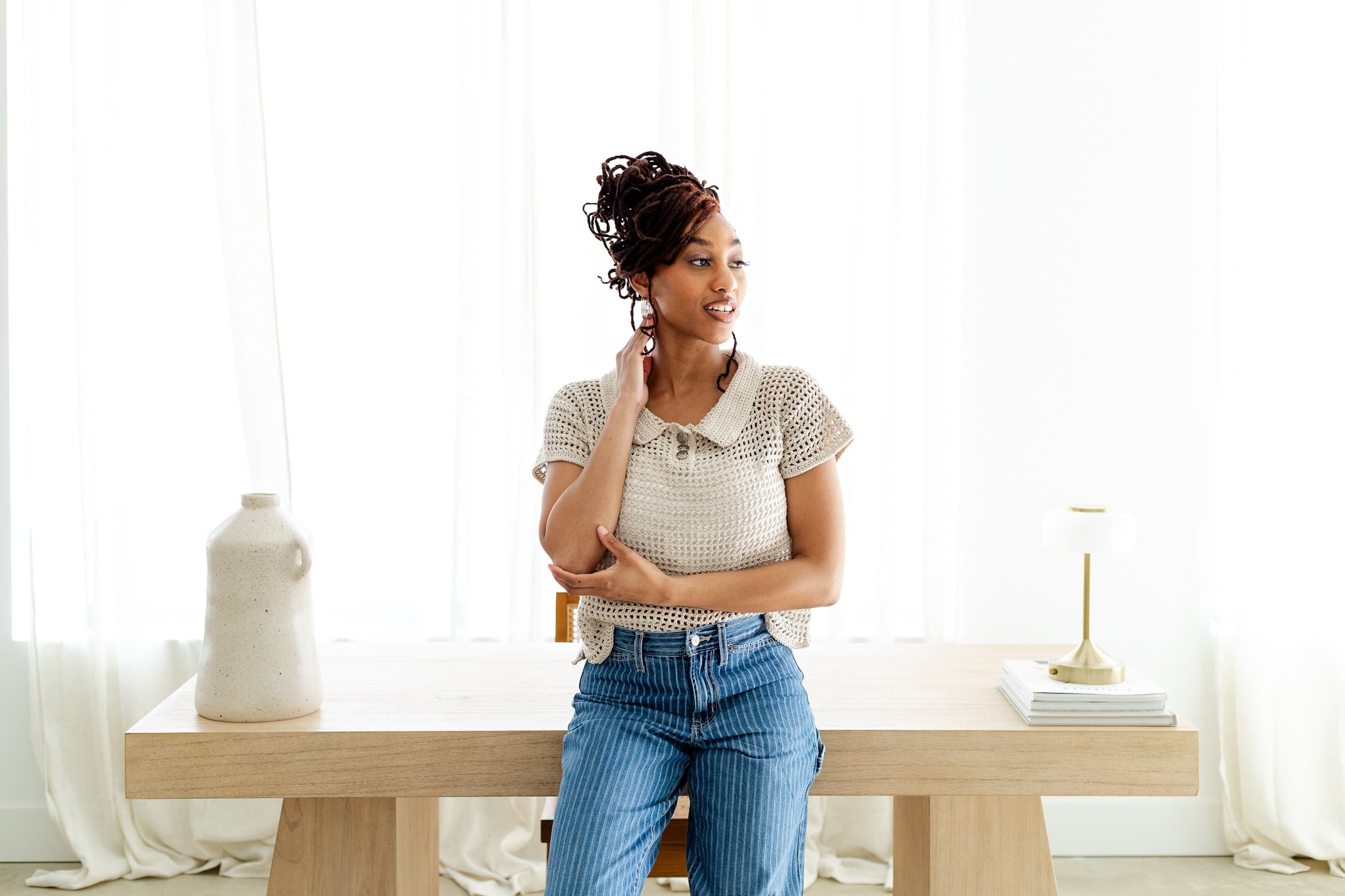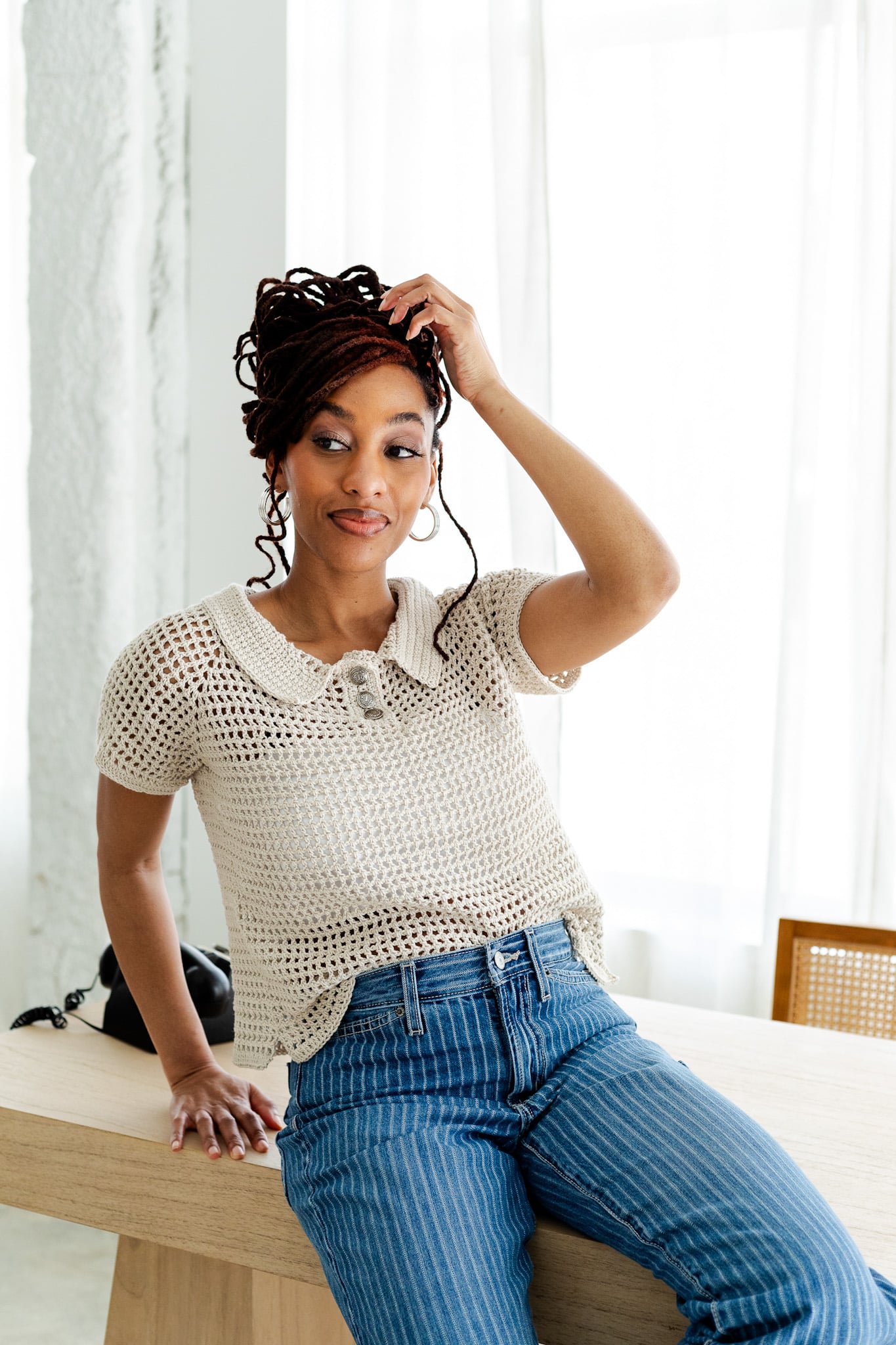 At first glance, the Luther Top looks like it has a lot going on. And you wouldn’t be wrong to think so. Many thoughtful details went into designing this crochet mesh tee, but it’s nothing you can’t handle.