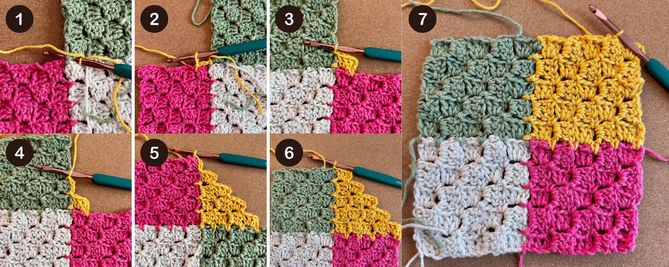 Put these two concepts together for a simple, secure way to assemble a crochet patchwork blanket.